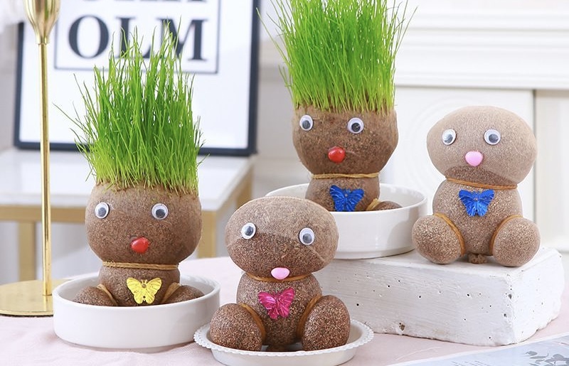 Травянчик – это фигурка из ткани или другого материала, внутри которой посеяны семена травы. Со временем из головы травянчика вырастает зелёная «шевелюра», которую можно стричь и укладывать по своему желанию. Результат: вы унесёте домой своего собственного травянчика, который будет радовать вас зеленью и станет ярким акцентом в вашем доме.